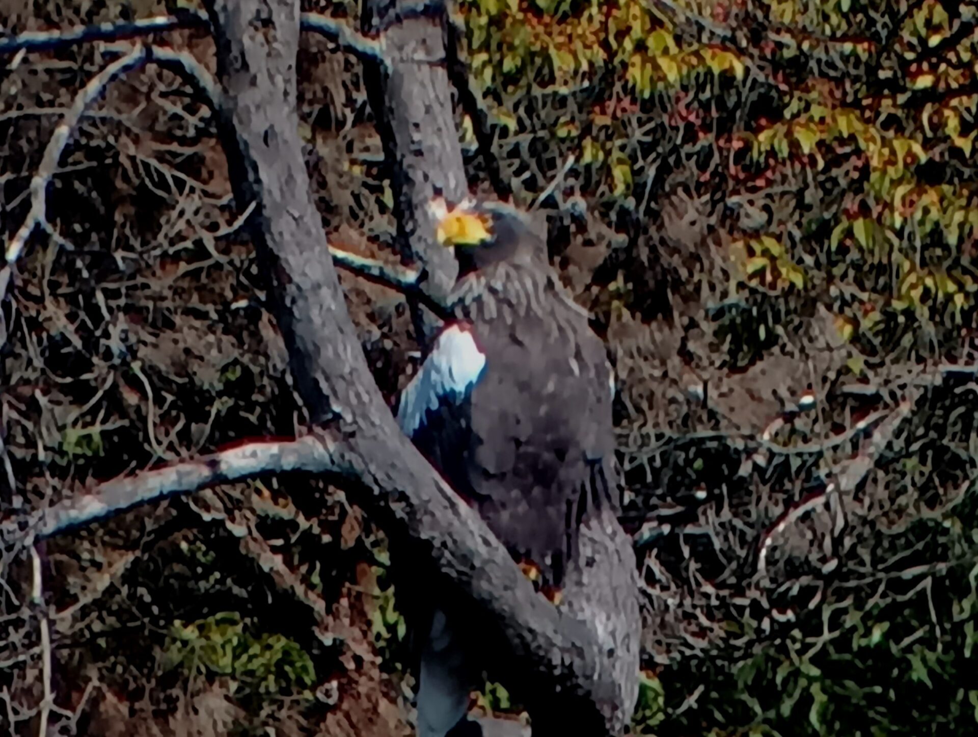 西池から次に湖北野鳥センター経由山本山ふもとに移動し、オオワシのおばあちゃんに期待しました。センターでオオワシの位置確認した後、麓まで歩きました。途中、オオワシの位置を何度か確認しました。麓に到着し、オオワシをスコープに入れて参加者の皆さんに見て頂きました。初めて見た方は感動されて、毎年、ツアーに参加されている方は、オオワシに感謝し、それぞれ色々な思いで楽しまれているように感じました。オオワシは羽繕いしたり、鳴いたりして少し落ち着きが無いように感じていた瞬間に風が吹き、オオワシは飛び立ちました。一瞬、湖上方面に大きく旋回した後、再び山本山に戻ってきて、観察しやすい所に止まってくれました。オオワシのサービスに満喫し、来年も飛来してくれるように祈りながら、湖北野鳥センターに戻りました。センター内からは湖上のカモ類やカイツブリ類を観察しました。地上ではシルエットでしたがオオヒシクイが休息し水際近くでハマシギが採餌していました。