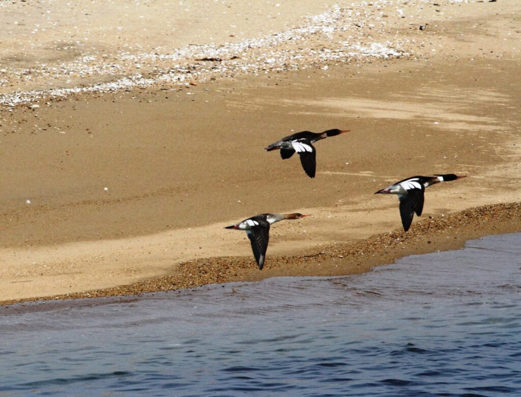 飛翔するウミアイサ