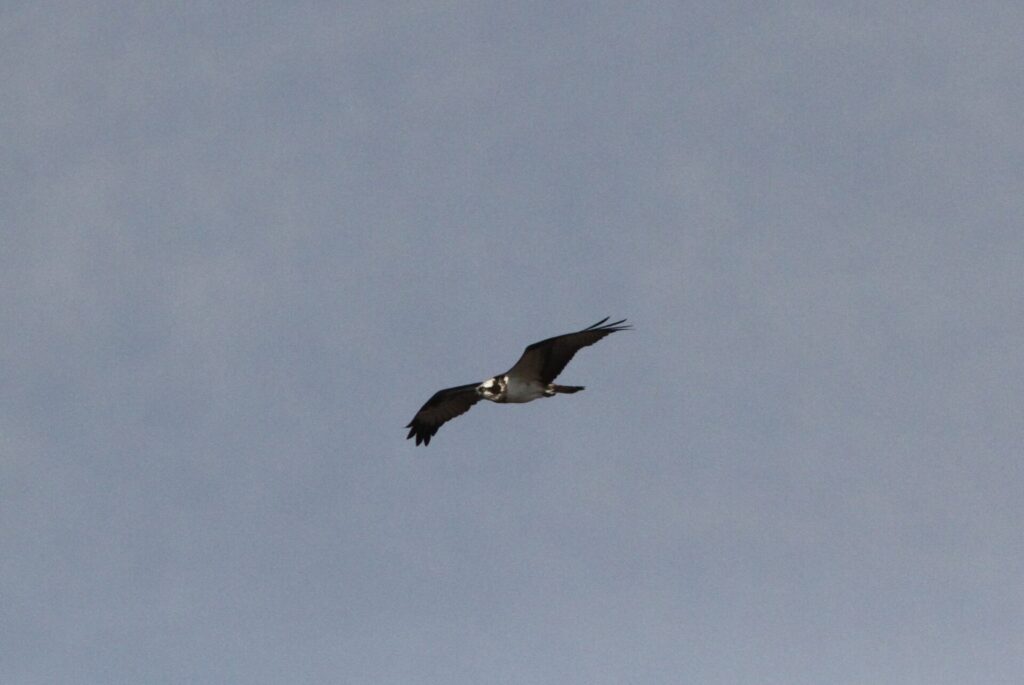 お昼がいつの間にか過ぎて、各自昼食をとってもらい、再集合時間をお知らせした後に一旦、解散しました。バスは14時に出発し、次の目的地14時45分頃に到着。この様な環境にはミサゴやチュウヒ、ハヤブサ、オオタカなどの猛禽類出現に注意と話しているとミサゴが飛び始めていました。狩りは、失敗していました。